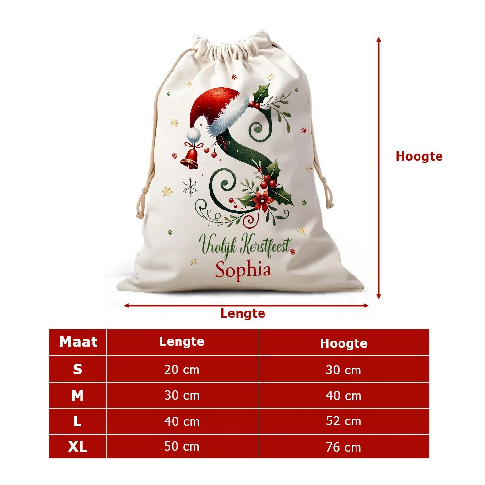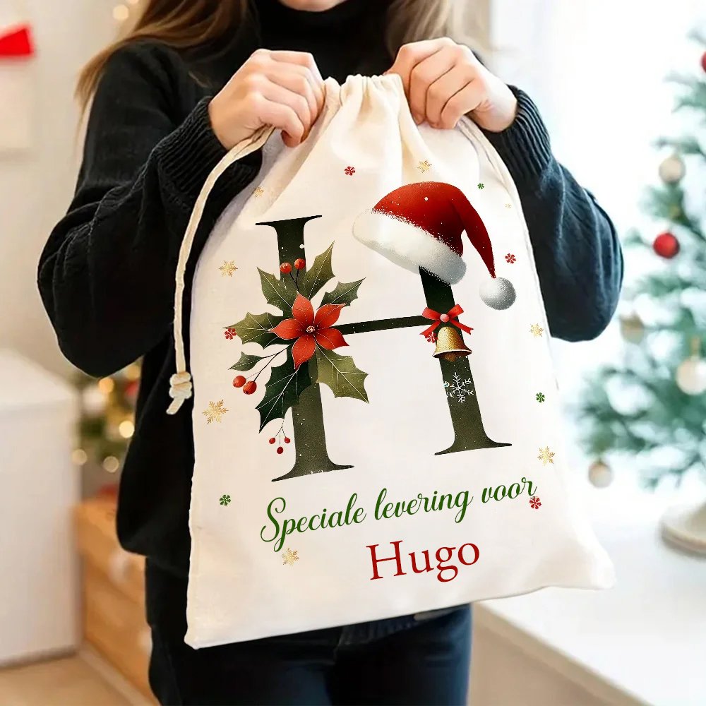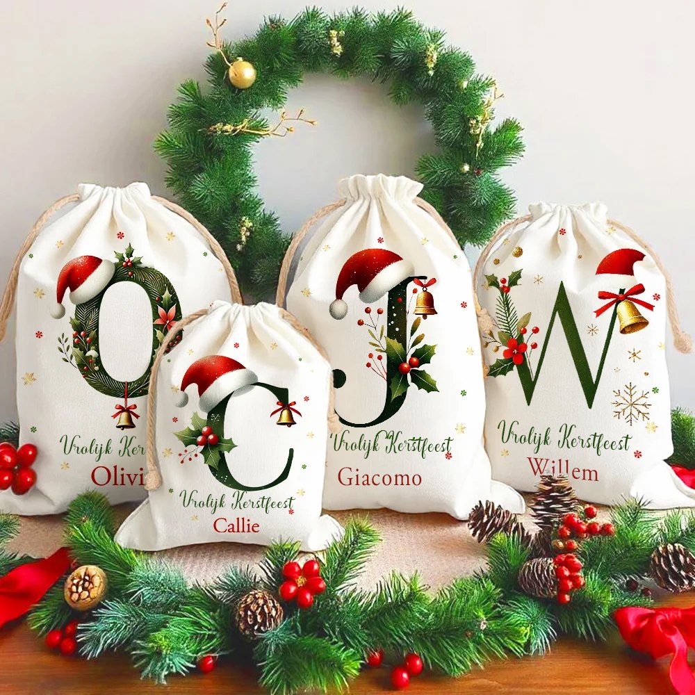 Met deze unieke cadeauzak kunt u uw eigen initialen en naam toevoegen, inclusief het kerstmutsbel-ontwerp, zodat elke zak een bijzondere uiting van liefde wordt. Er zijn vier formaten beschikbaar, waardoor deze cadeauzak zich onderscheidt van standaardverpakkingen. De gepersonaliseerde initialen en naam maken van de cadeauzak een bijzondere verpakking vol unieke kerstwensen. Of het nu voor kinderen of dierbaren is, deze persoonlijke touch zorgt voor een uniek kerstgevoel.