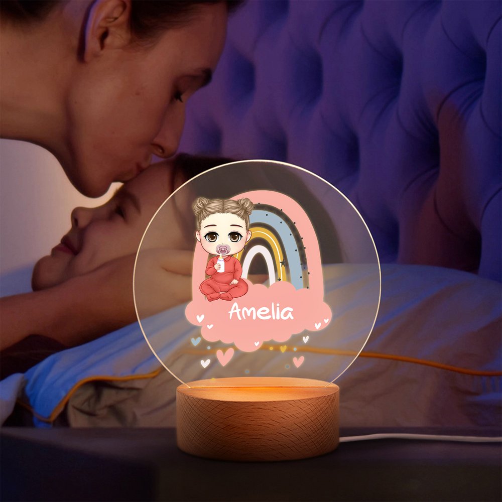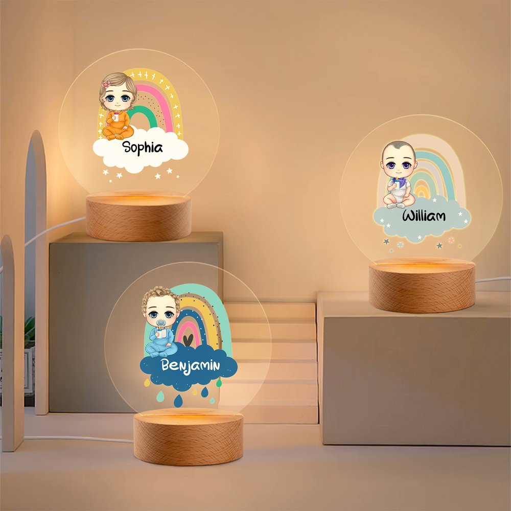 Je kunt het nachtlampje aanpassen met een cartoon babyafbeelding, kiezen uit 32 leuke regenboogpatronen en 1 van de 13 wolkenkleuren kiezen. Voeg ook namen toe in zwart of wit. Elk detail, van het ontwerp tot de persoonlijke details, maakt het tot een uniek cadeau dat speciale herinneringen opslaat in zacht licht.