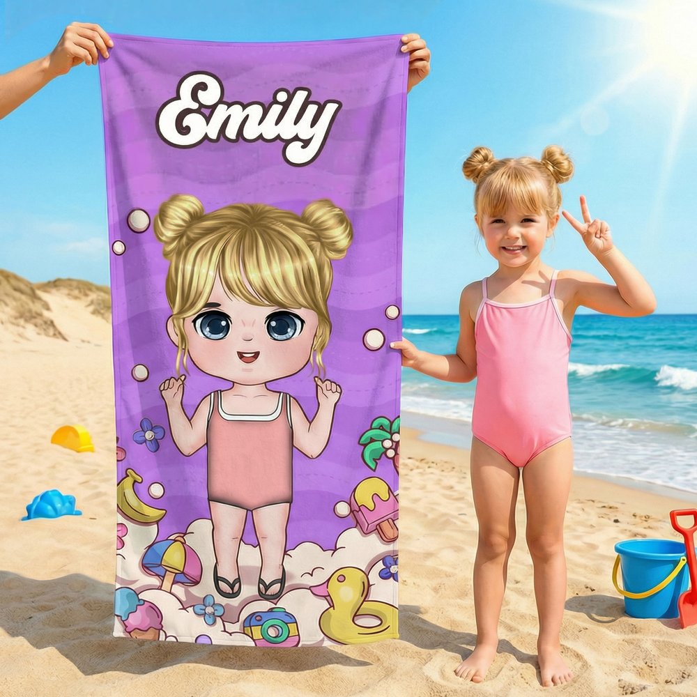 Het ontwerp van dit strandlaken heeft schattige stripfiguren als belangrijkste element, met exclusieve aanpassingen op basis van de naam die u opgeeft. Heldere kleuren en levendige cartoonstijlen vullen elkaar perfect aan, waardoor elk strandlaken een unieke zomeridentificatie wordt die de persoonlijkheid en speelse charme van de gebruiker laat zien. Je kunt er ook voor kiezen om het te combineren met een bijpassende koordtas met hetzelfde patroon, waardoor ze de meest in het oog springende persoonlijke identificatiemiddelen op het strand worden.