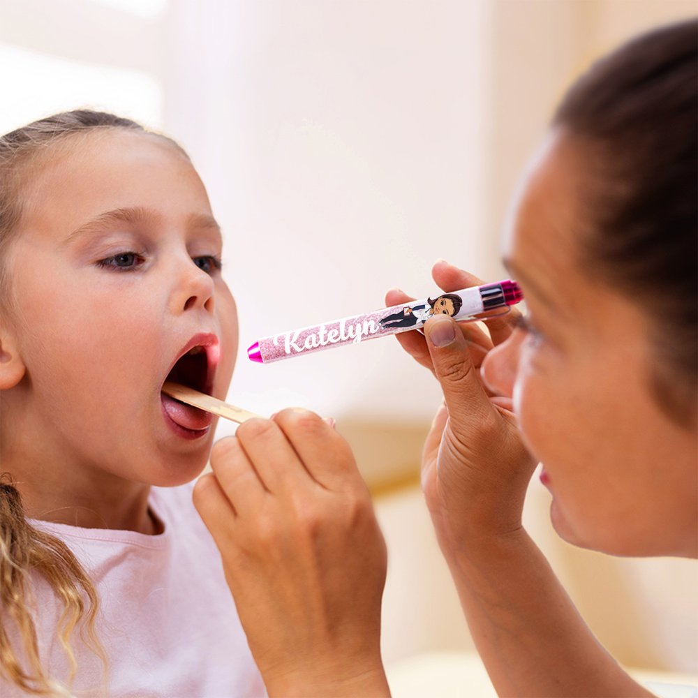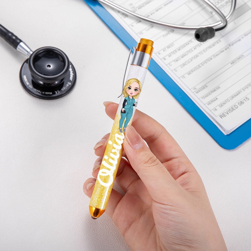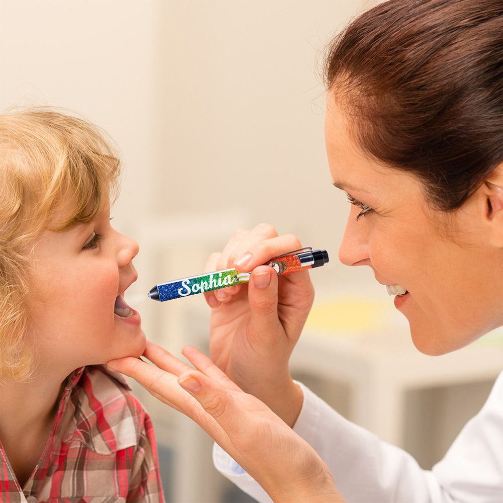 Met professionele stripfiguren zoals verpleegsters en dokters, gecombineerd met een levendige achtergrond, wordt dit praktische hulpmiddel een speelse toevoeging. Aanpasbaar met je naam en een verscheidenheid aan heldere kleuren van de dop, verandert de pen een professioneel hulpmiddel in een stijlvol, gepersonaliseerd stuk, dat een vleugje moeiteloos plezier injecteert in het strenge medische beroep.