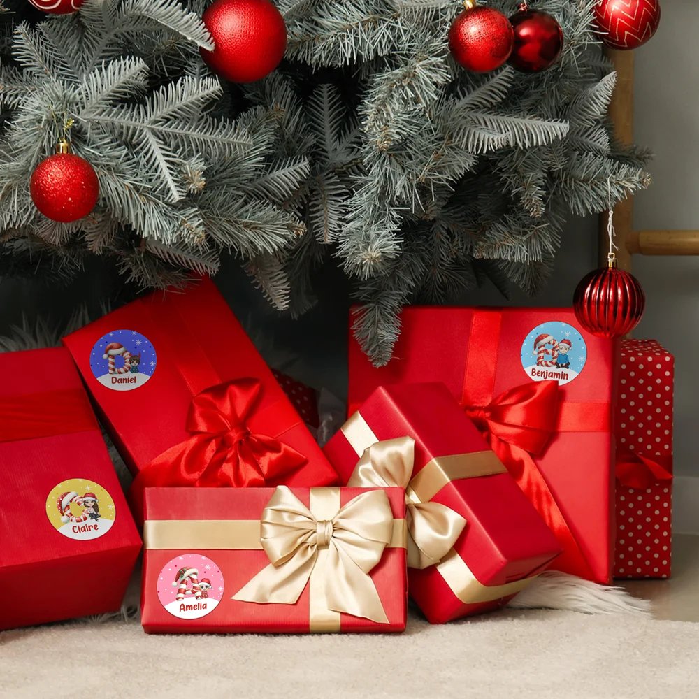 Deze stickers hebben als belangrijkste ontwerpelementen kersttekenfilmfiguren, aangevuld met feestelijke kleuren voor een levendige en schattige look. Aanpasbaar met zowel initialen als namen, creëren ze een feestelijke sfeer en boeien ze kinderen met hun speelse ontwerpen, waardoor het geven van cadeaus een vrolijkere gelegenheid wordt.