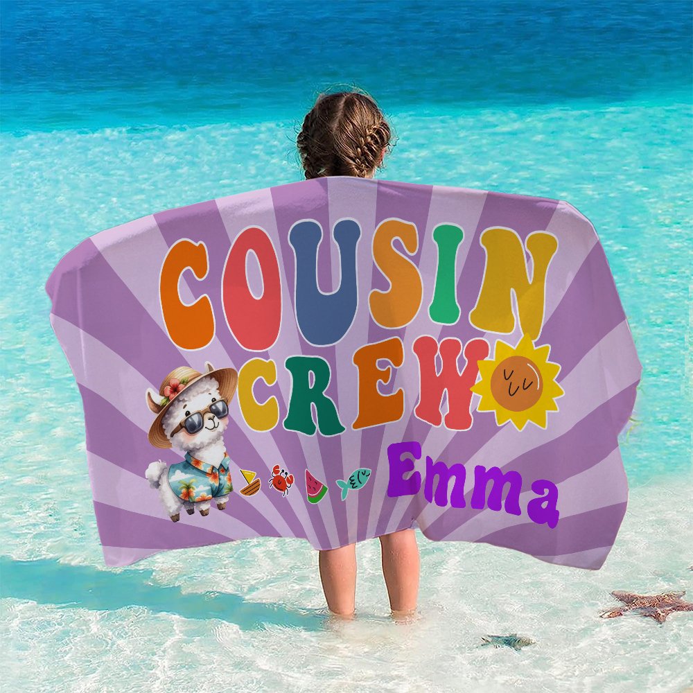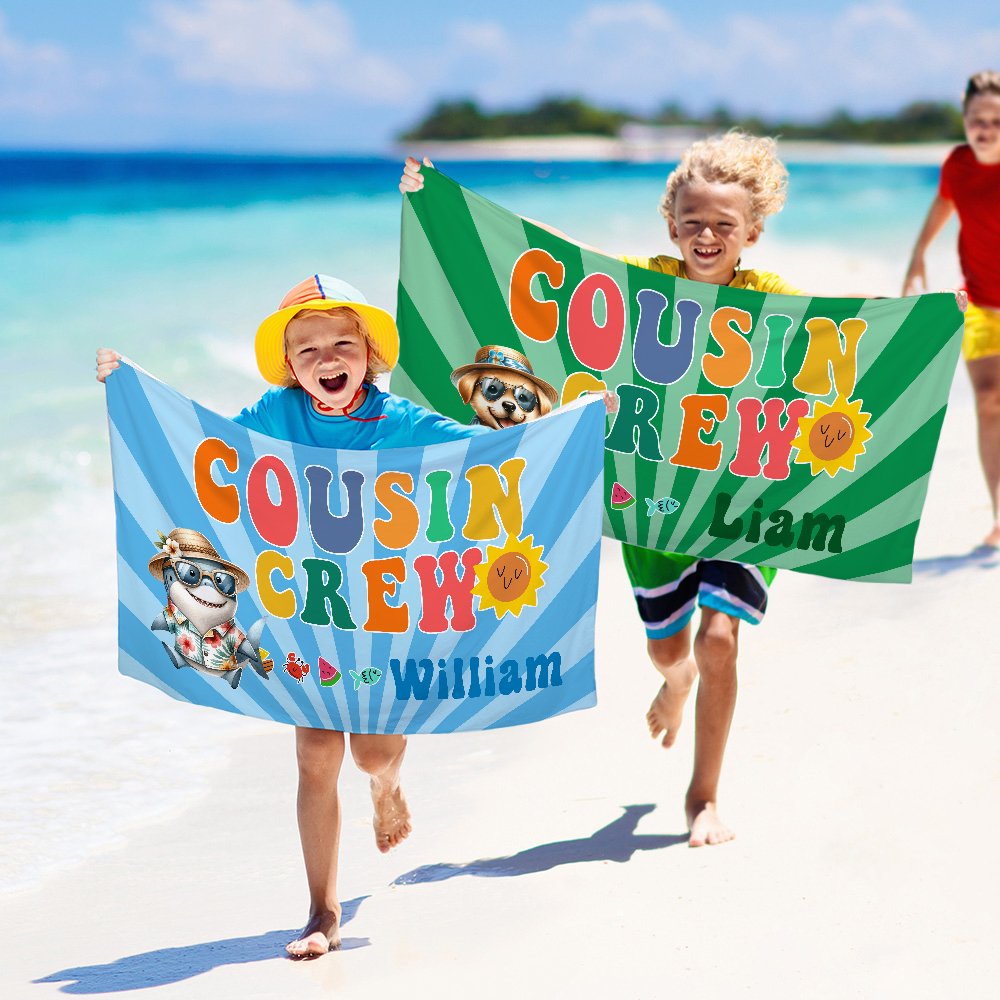 Dit strandlaken heeft een uniek ontwerp en de "Cousin Crew" slogan combineert tropische Hawaiiaanse dierenelementen om levendigheid en plezier toe te voegen. Of het nu een speelse schildpad, een levendige haai of een kleurrijke tropische vogel is, elk patroon is vol kinderlijkheid en warmte, vooral geschikt voor vrienden en familie. Bovendien kan de naam ook worden aangepast, waardoor dit strandlaken uniek is en een must-have voor de zomer.