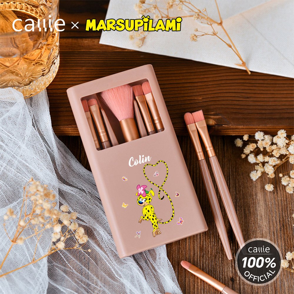 Gepersonaliseerde Schattige Staart-Springende Marsupilami 5 Stuks Make-up Brush Opbergdoos Set met Naam Verjaardag Huwelijkscadeau voor Vrouwen | Callie × Marsupilami®
