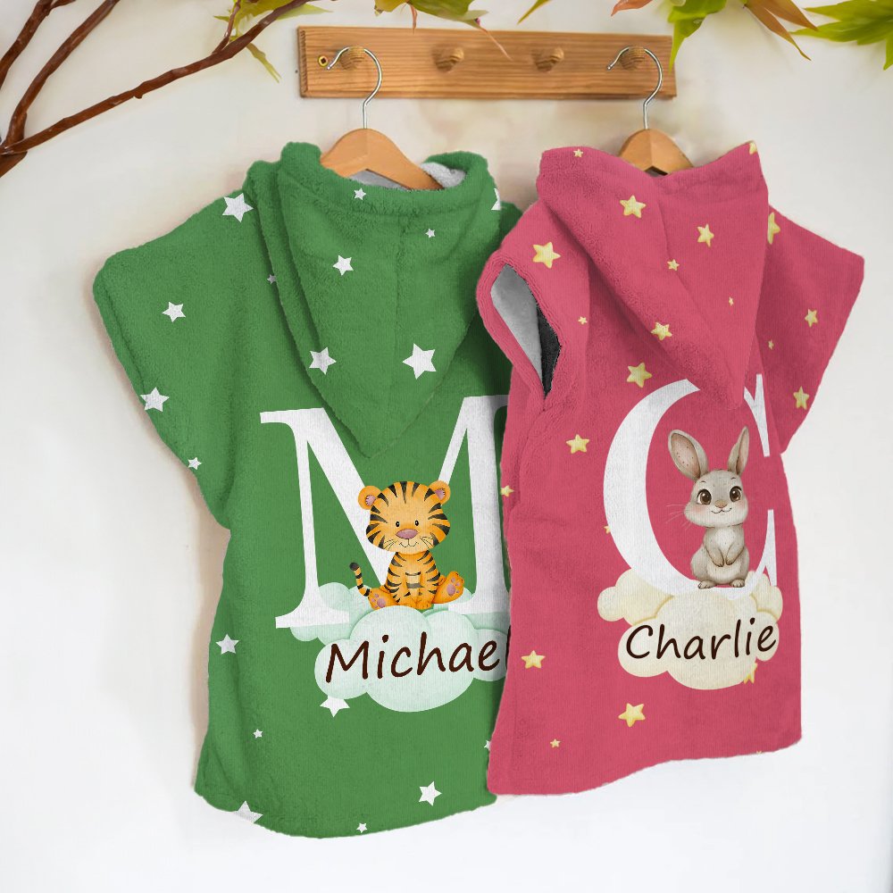 Met 46 schattige bosdierenpatronen, waaronder een beer, fantasie-eenhoorn, wasbeer, zebra, leeuw, enzovoort, samen met grillige wolken en sterren, voegt dit extra grote strandlaken met capuchon een leuke, speelse touch toe aan je stranddag of zwembadervaring.