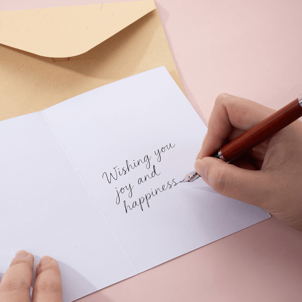 De kaart is gemaakt van dik, duurzaam kaartmateriaal van hoge kwaliteit, is helder voor schoon drukwerk en is bestand tegen buigen, waardoor het een duurzaam aandenken is. Het bevat een gladde, gemakkelijk te krassen hartsticker, geen schilfers of geknoei, en een stevige envelop van kraftpapier, zodat de kaart in perfecte staat aankomt, klaar om de verrassing te brengen.