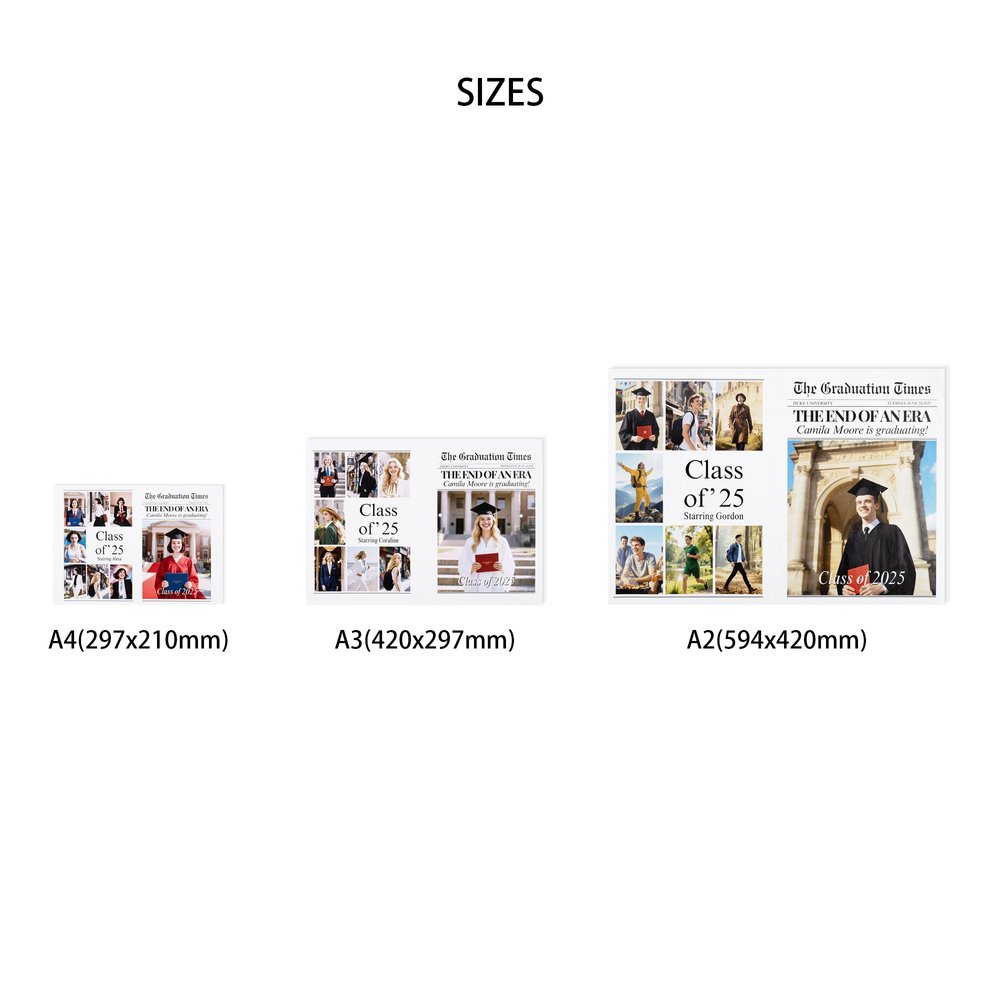 Met onze aanpasbare afstudeerkrant kun je je afstudeeraankondiging echt onvergetelijk maken. Of je nu afstudeert aan de middelbare school, universiteit of een andere academische instelling, je kunt de krant personaliseren met foto's, je naam en je jaar. Het is een perfecte manier om je prestaties op een unieke, persoonlijke manier met familie en vrienden te delen.