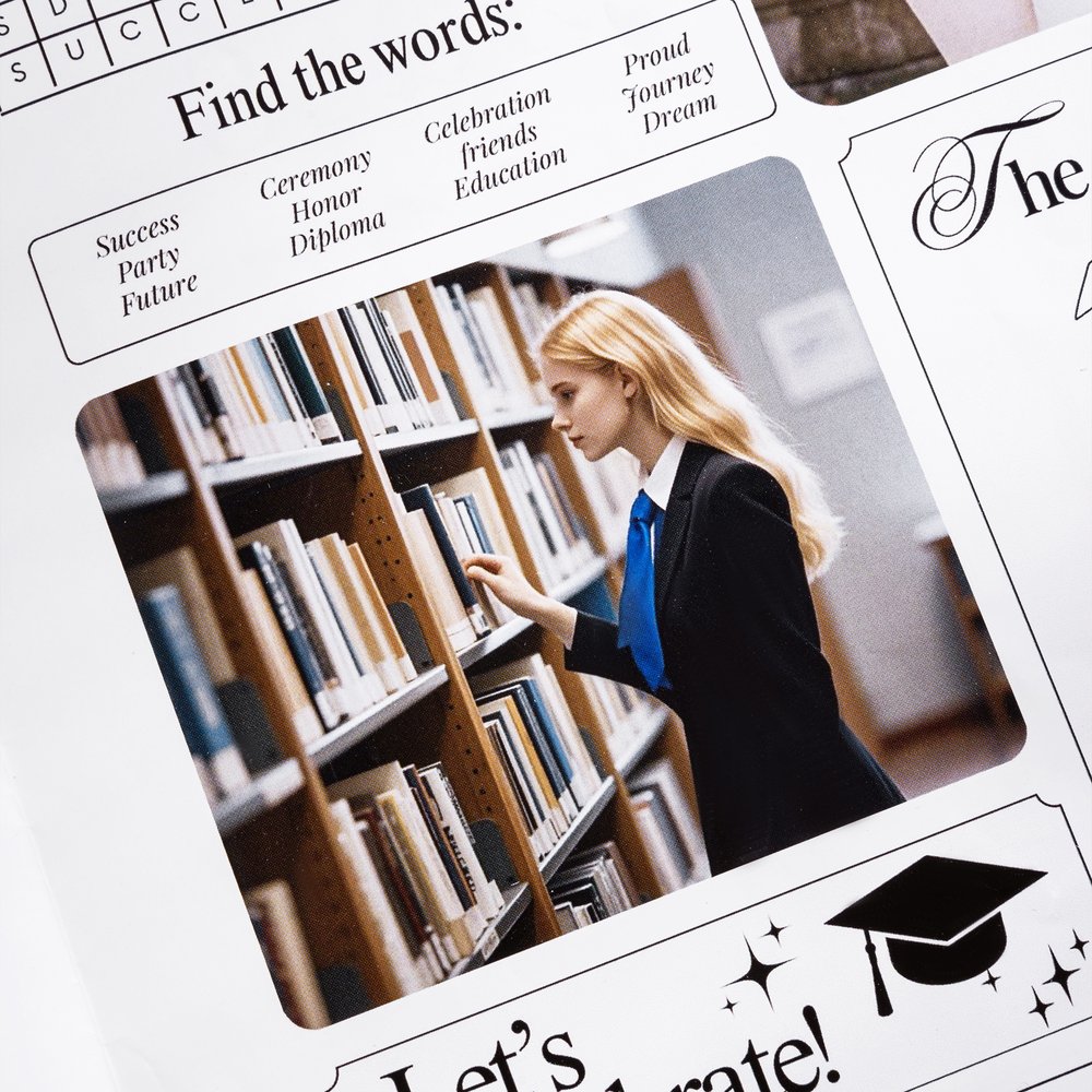 Het is niet alleen voor afstudeeraankondigingen. Je kunt het tentoonstellen op afstudeerfeestjes, thuis bewaren als een persoonlijk aandenken of zelfs digitale versies online delen. Waar het ook gebruikt wordt, het brengt de vreugde en trots van het afstuderen terug.