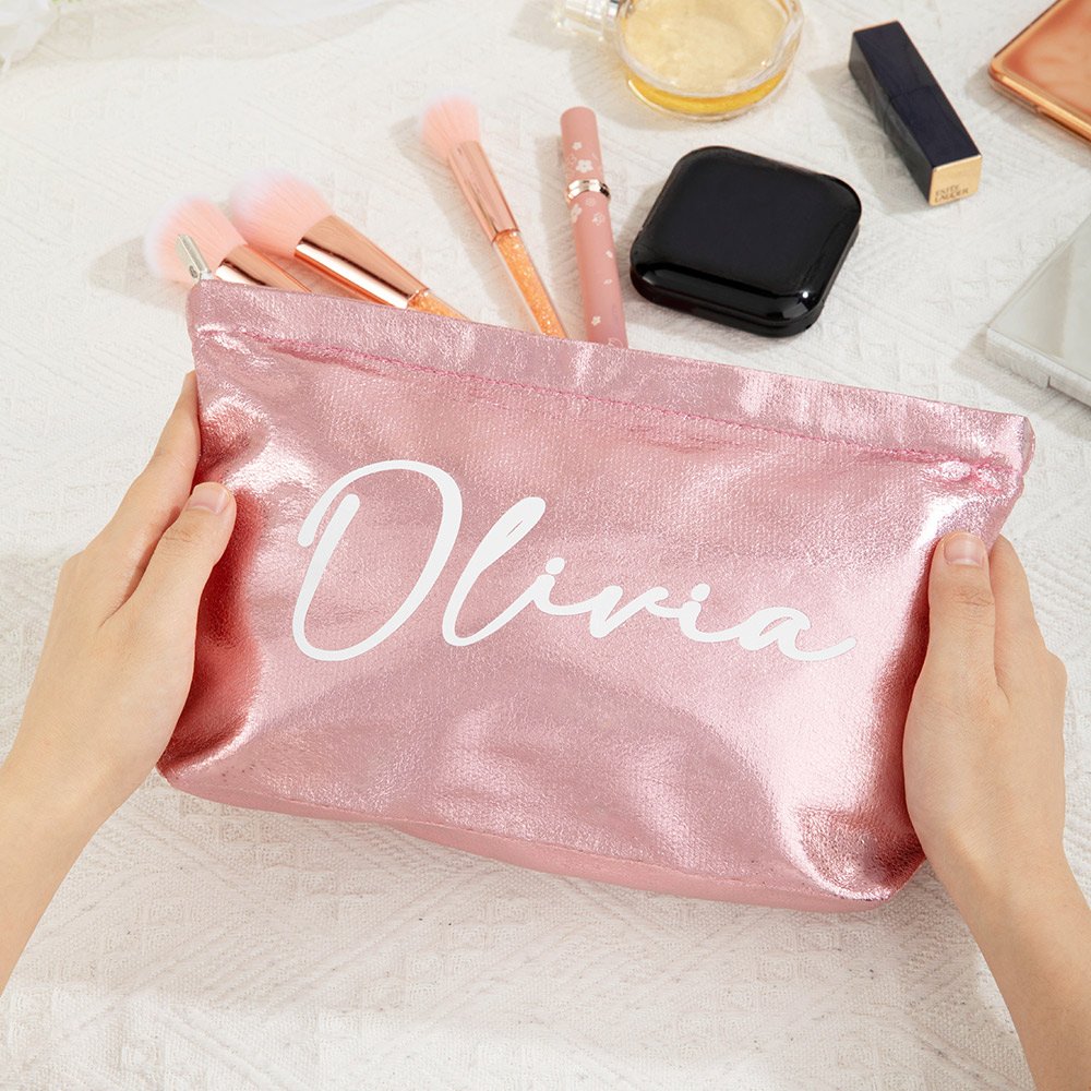 Dit make-uptasje heeft een glitterkleurenthema dat slim wordt gecombineerd met een gepersonaliseerd naamontwerp, waardoor een stijl ontstaat die zowel artistiek als uniek is. De tas kan worden aangepast met je naam, waardoor je individuele flair zichtbaar wordt.