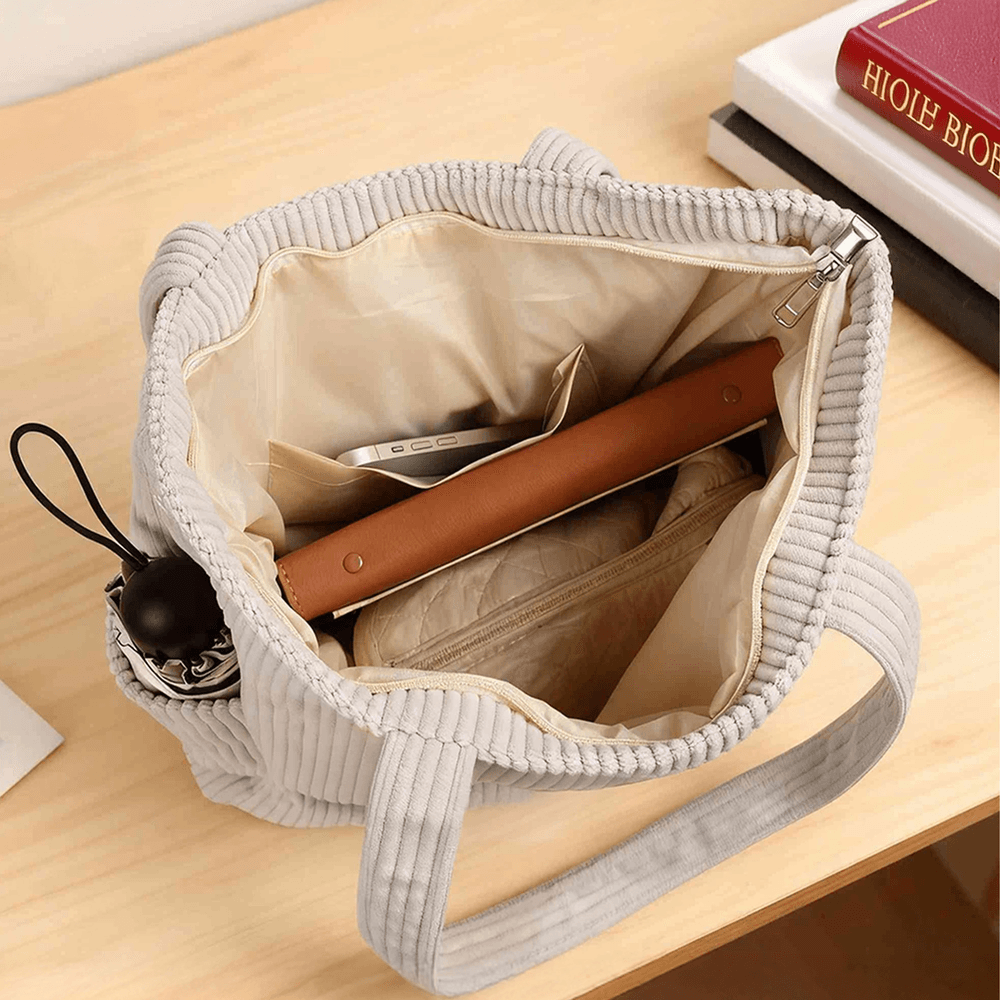 Gemaakt van eersteklas ribfluweel dat zacht aanvoelt maar toch veerkrachtig is, met een duidelijke textuur die bestand is tegen slijtage. De brede schouderbanden zorgen voor comfortabel dragen, terwijl de stevige structuur zijn elegante vorm behoudt, zelfs bij veelvuldig dagelijks gebruik, en een duurzame duurzaamheid biedt.