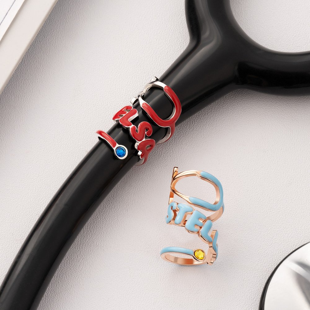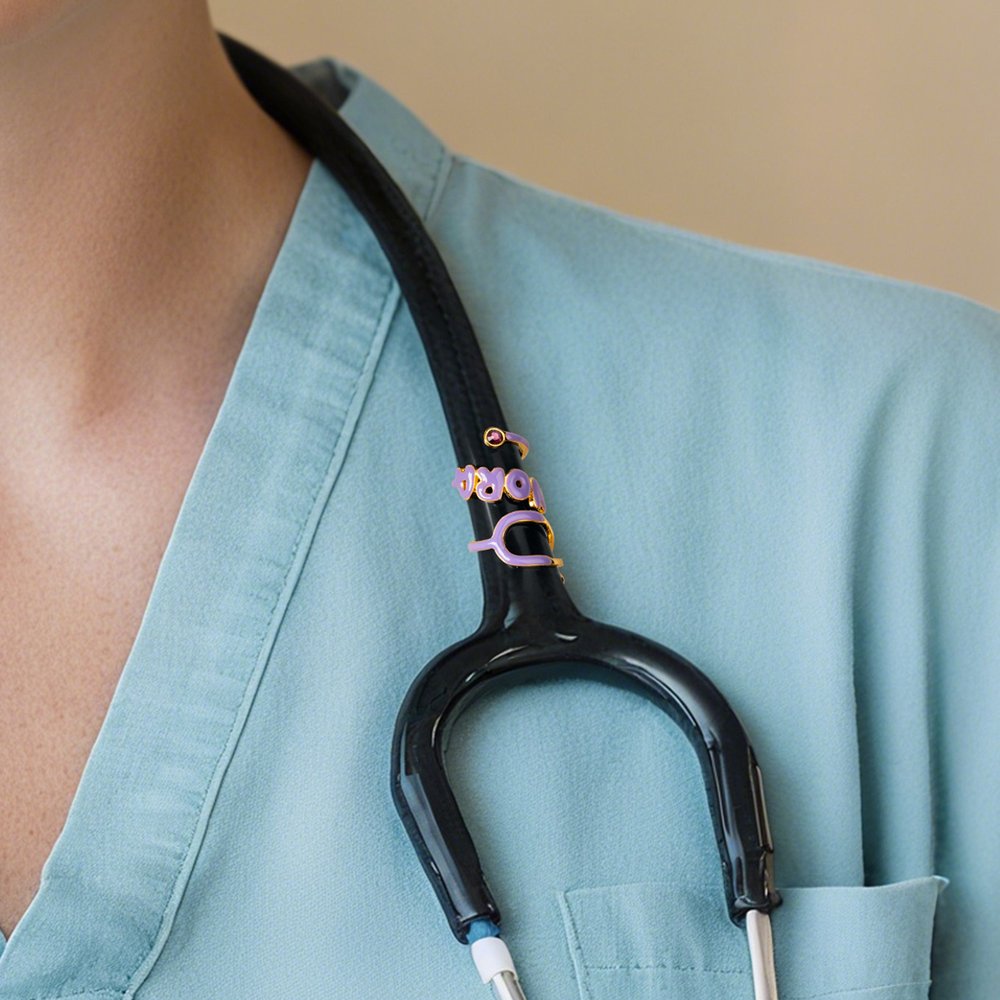 Met een schattig ontwerp in de vorm van een stethoscoop, versierd met een fonkelende geboortesteen, verandert deze gepersonaliseerde tag een standaard medisch instrument in een betekenisvol persoonlijk embleem. Aanpasbaar met een naam in meerdere kleuropties, breekt het de klinische eentonigheid af en behoudt het een gevoel van professionele warmte - een onderscheidend accessoire voor professionals in de gezondheidszorg.