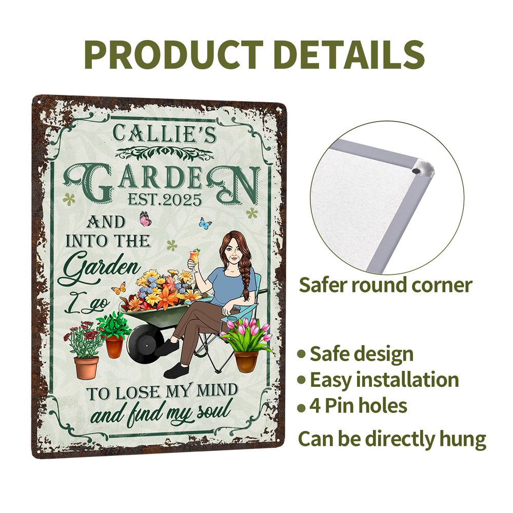 Dit metalen bord combineert op een slimme manier bloemen, potplanten en stripfiguren, met de ontspannende tekst "Into the garden I go to lose my mind and find my soul" erop gedrukt, waardoor een mooie en rustige tuin ontstaat, alsof mensen in de natuur zijn. Je kunt niet alleen zelf de cartoonafbeelding bijpassend maken, maar er ook je naam en datum aan toevoegen, waardoor je perfect persoonlijke warmte en een uniek artistiek gevoel overbrengt.