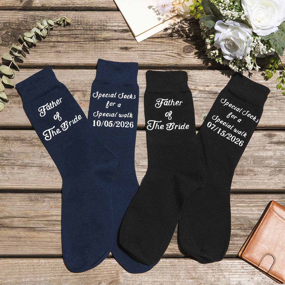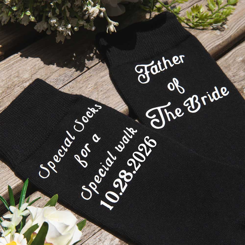 Deze sokken zijn speciaal ontworpen om nog gedenkwaardiger door het gangpad te lopen met je vader of schoonvader. Ze zijn voorzien van de trouwdatum, waardoor ze een mooi aandenken vormen. De sokken zijn verkrijgbaar in verschillende kleuren die passen bij elk huwelijksthema en persoonlijke stijl.