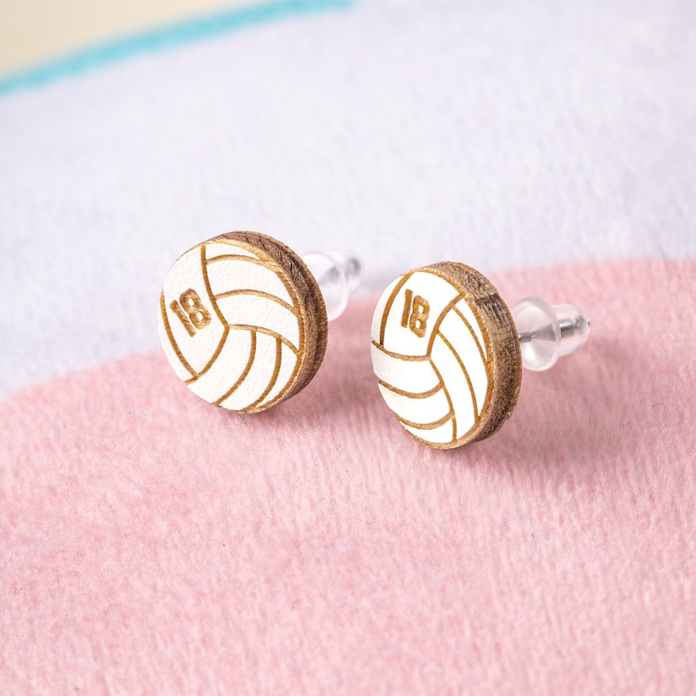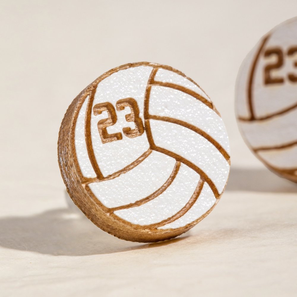 Deze houten oorbellen hebben een levendig volleybalmotief, gemaakt met levendige en gedetailleerde kunstzinnigheid. Personaliseer ze met jouw nummer of dat van je favoriete speler en combineer sportieve passie met een unieke stijl. De natuurlijke houtnerf voegt karakteristieke textuur en charme toe aan elk paar.