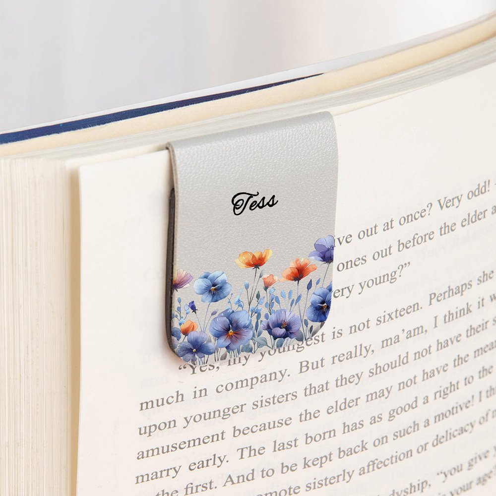 Gepersonaliseerde Aquarel Geboortebloemen Magnetische PU-leer Bladwijzerclip met Naam Verjaardagscadeau voor Boekenliefhebbers en Boekenwurmen